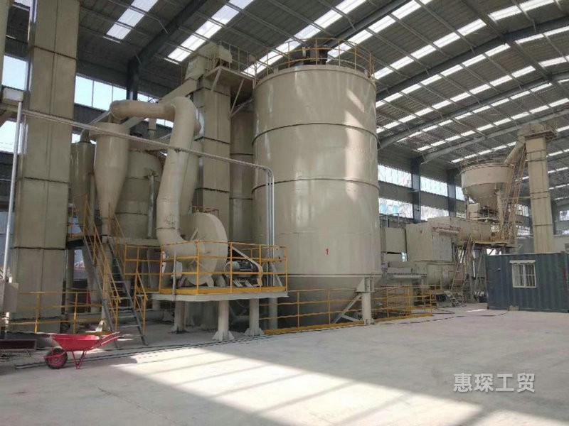 待粉磨的物料通過破碎機破碎,經提升機送至儲料斗,可調速的給料機從料斗經罩筒入料口輸送到主機腔內。在傳動裝置的驅動下,中心軸帶動著梅花架總成、磨輥總成、鏟刀架、鏟刀座總成一起旋轉,磨輥總成安裝在梅花架上, 旋轉產生巨大的離心力使磨輥與磨環緊貼在一起,物料在鏟刀座總成作用下,不斷把物料鏟送至磨環、磨輥間,磨環和磨輥在相對旋轉運動中在離心力的作用下不斷對物料進行碾壓、擠壓、沖擊。對物料進行粉碎細化。 粉碎后的粉體在氣流的帶動下上升到分級區域,由渦輪分級機進行氣體與粉體分離,經渦輪分級機分離出的合格粉體通過管道送至雙旋風收集。不合格的粉體降回主機,并被再次碾壓破碎,直至合格。